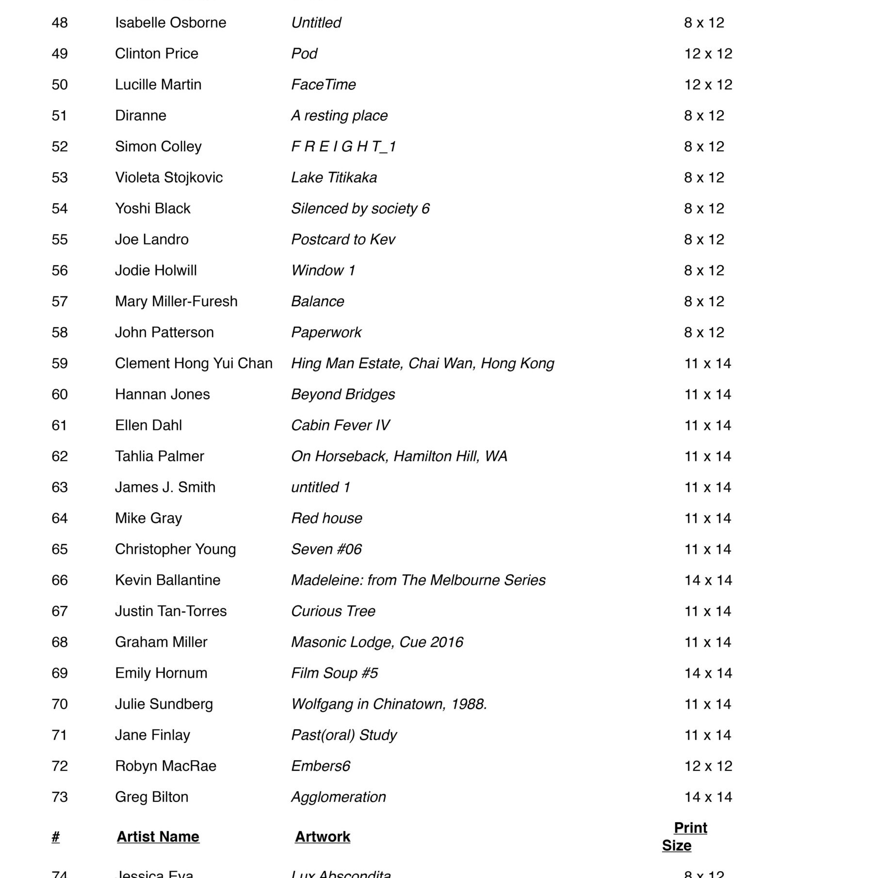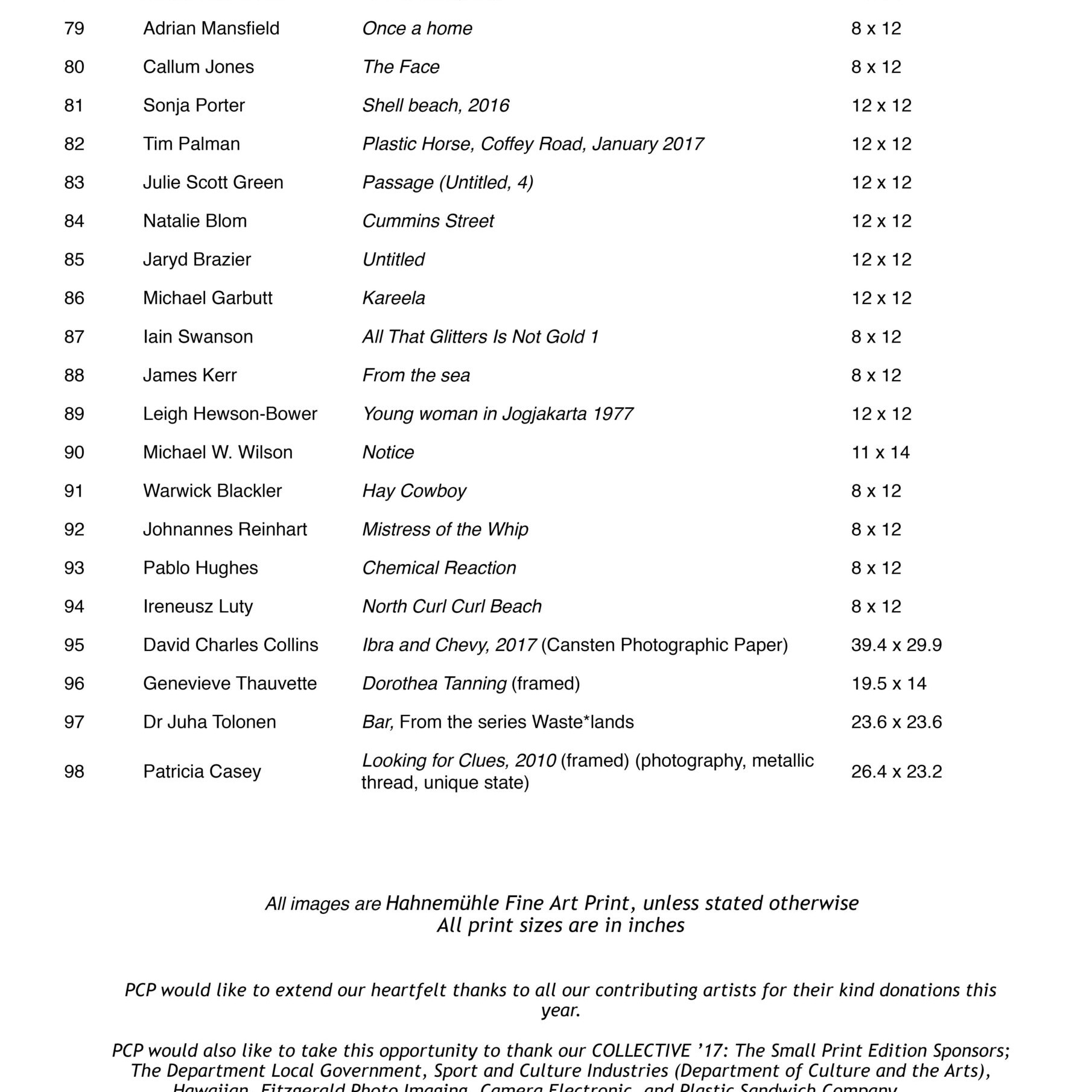 Funds collected go towards PCP’s future developments, whilst providing an opportunity for photographic artists to feature their work in a professional group exhibition alongside many other talented and accomplished photographic artists from WA and beyond.