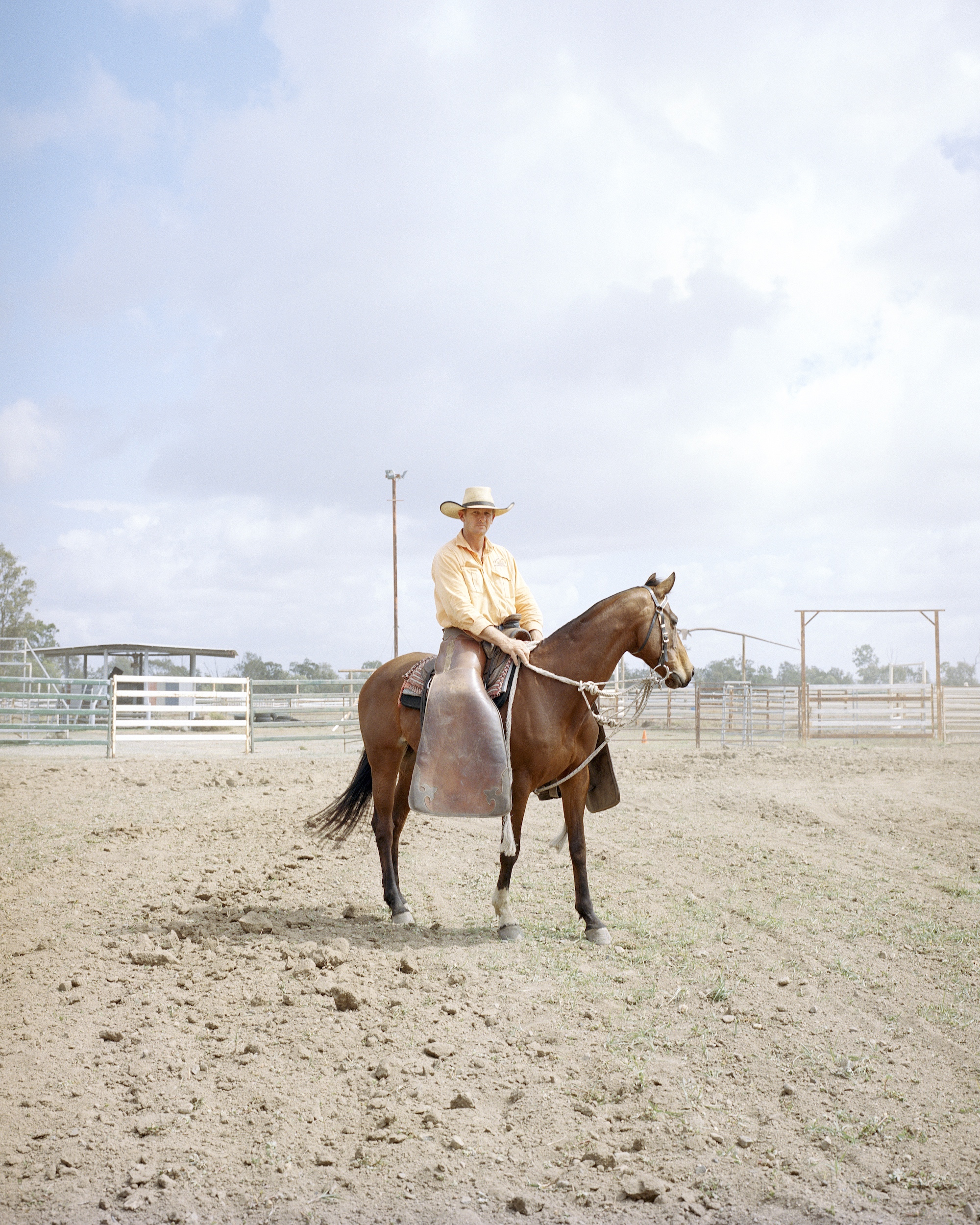 “Looking West”, is a documentary series that examines Australian Rodeo subculture. The work treats the Rodeo as a site in which to explore performative masculinity and the iconography of the Cowboy. It aims to destabilise notions of masculine identity by revealing its construction through social performance.