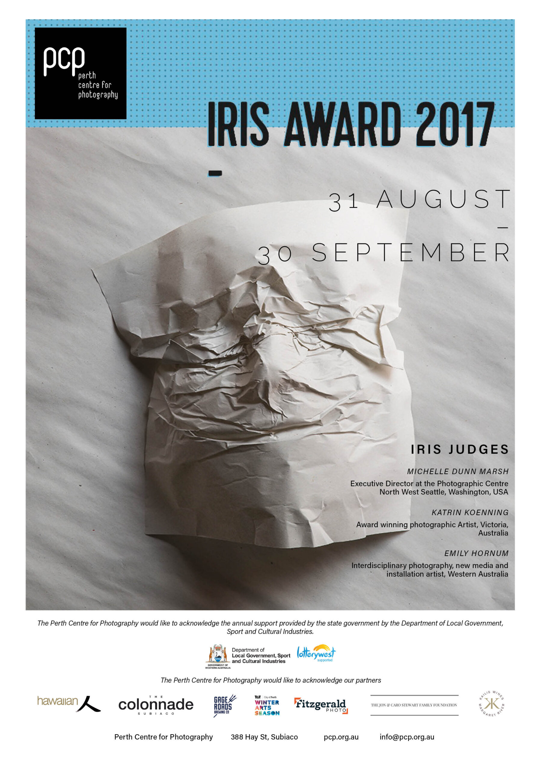 IRIS Award 201731 August - 30 September 2017The IRIS Award is an international prize recognising new and outstanding portraiture in photographic art. IRIS Award 2017 Catalogue IRIS Award 2017 Catalogue IRIS Award 2017 Winner. Image © Su Cassiano, ‘Divide and Dissolve', 2017, Ed. 1/30, Hahnemühle photo rag, 43 x 59.4 cm. IRIS Award 2017 Student Prize Winner. Image © Dom Krapski, ‘Dear Ol’ Dad', 2017, Ed. 1/5, Digital Inkjet Print, 37 x 50 cm. IRIS Award 2017 Judges Commendation. Image © Matthew Abbott, ‘Amelia', 2015, Ed. 2/8, Silver gelatin fibre based hand print, 119.8 x 98.5 cm.