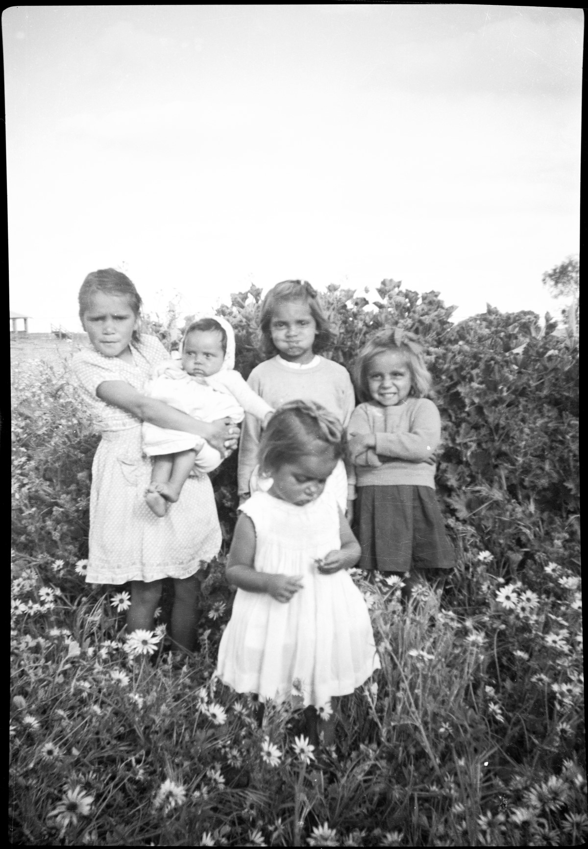 ‘We were not natives in the way they thought we were’, says Dallas Phillips, who is talking to me about her mother, Mavis Phillips née Walley’s collection of photographs. ‘Of course, we were native to the land,’ she continues. But we were modern, is the implication. She tells me about how splendidly her mother dressed, of how she got ‘dolled up’ whenever they went into town. Dallas directs my attention to the meticulous way she and her siblings are dressed in the photograph amidst the dandelion. To gaze at this picture is to open one’s eyes to a world rich in spontaneity and innocence. The beauty of the children, the thriving dandelion, the confident framing of the moment, are all indubitable. What else does Dallas see in this photo? ‘It shows how well Mum cared for and provided for us; how well we were sheltered and loved.