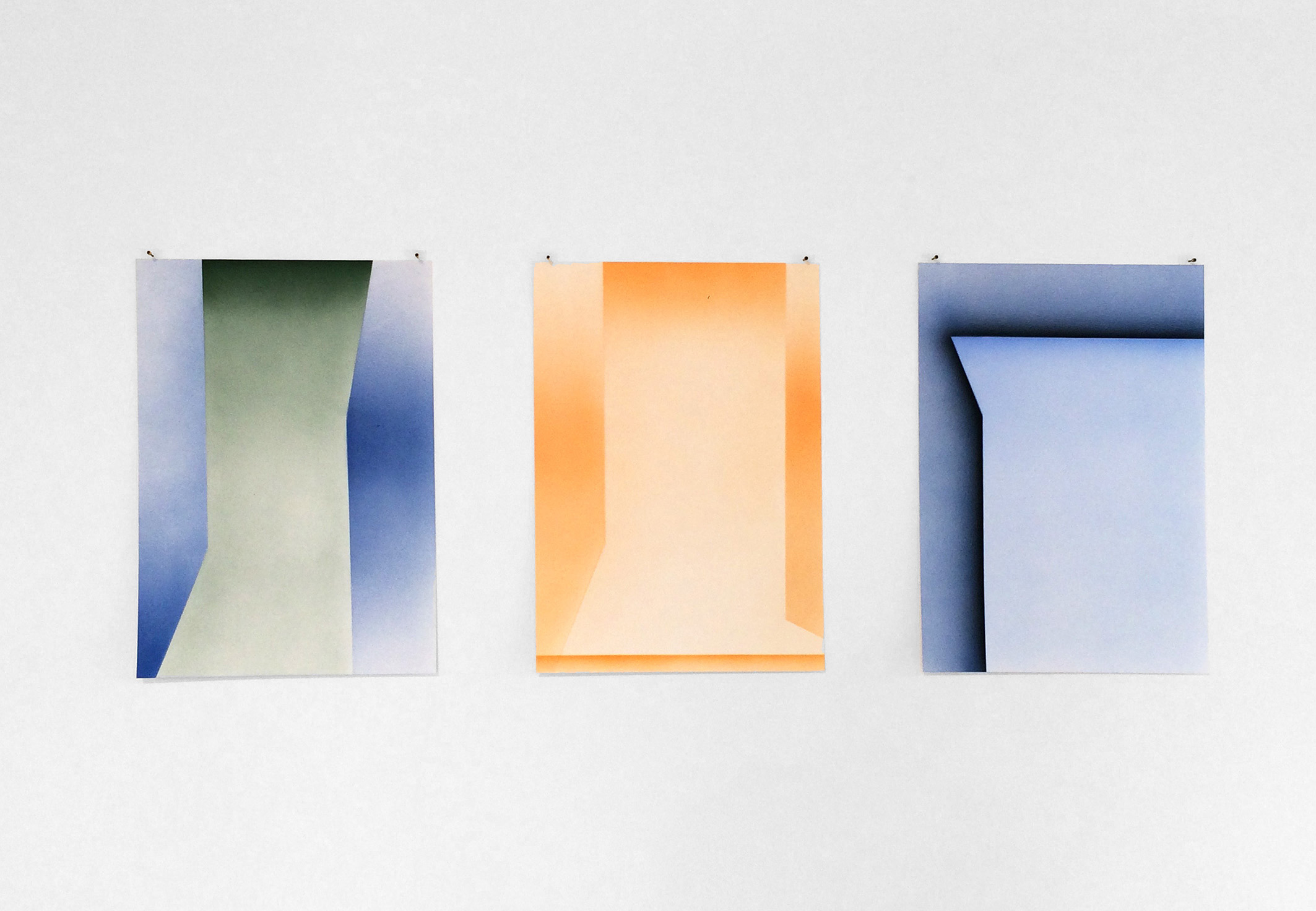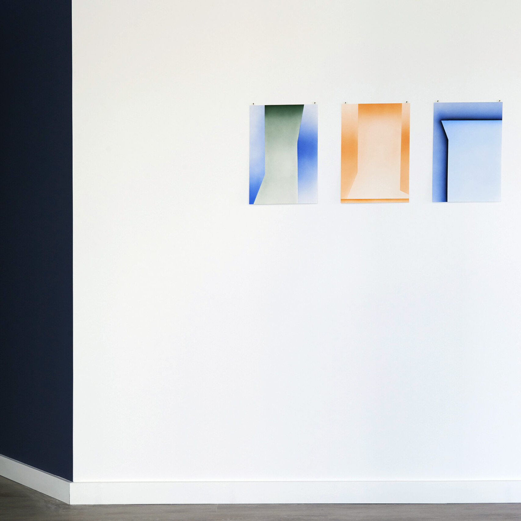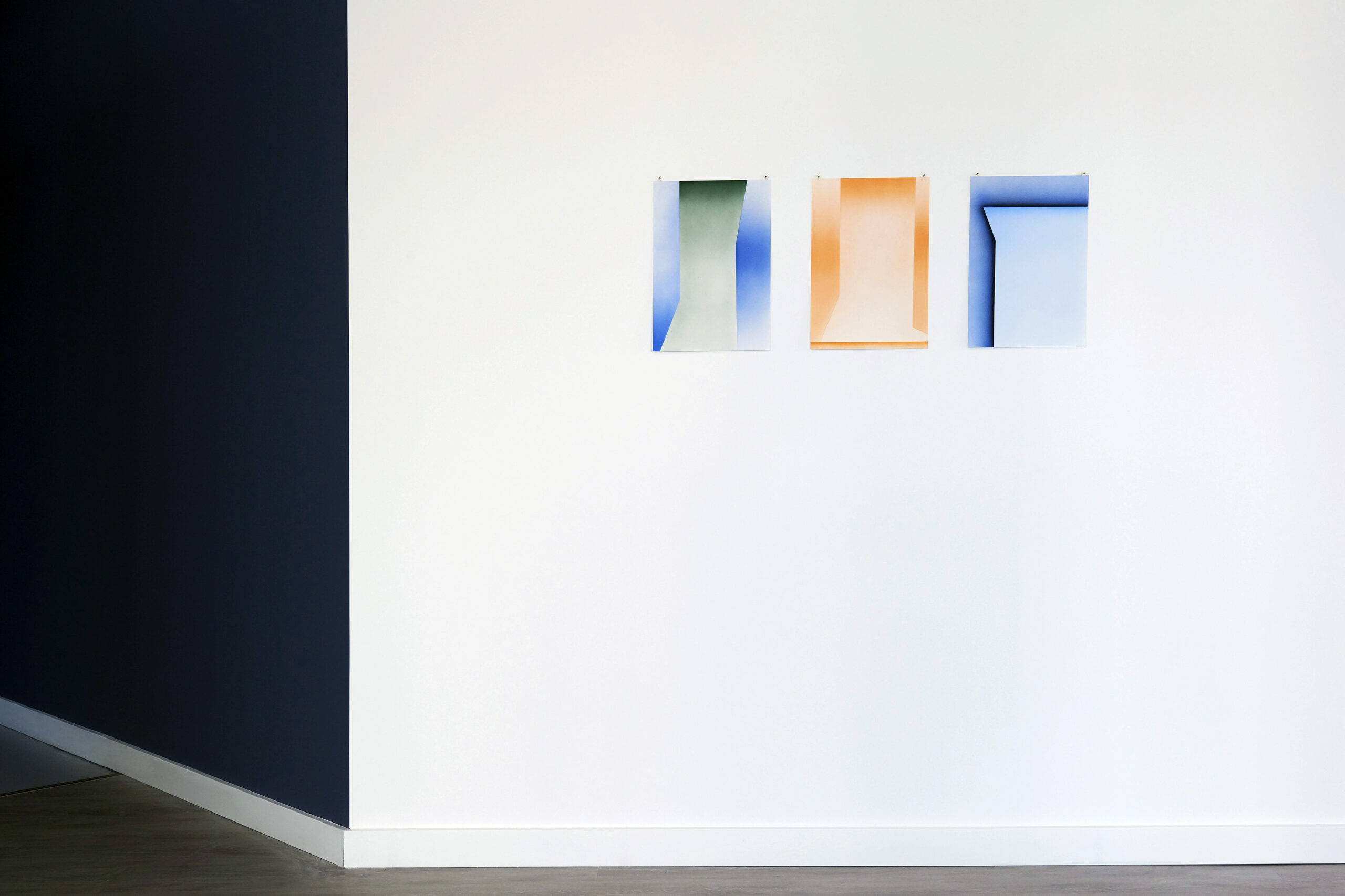 Cavaniglia’s Untitled (infinity) I & II imitate infinity backdrops used in photography. These impossible non-sites suggest imaginary settings and distant horizons, places that exist in our minds but remain out of physical reach.